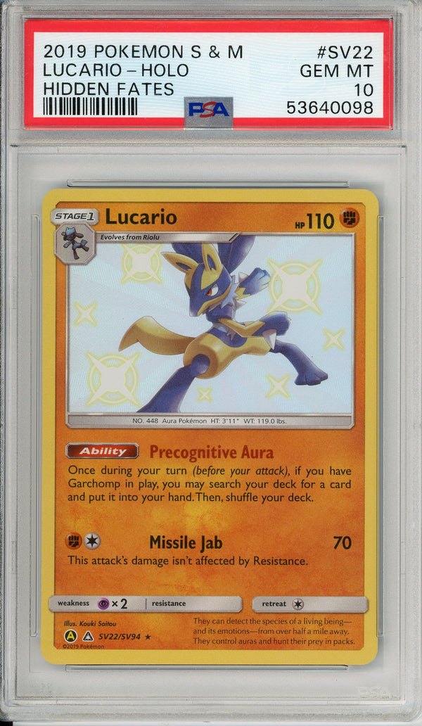 Pokemon Graded: Lucario SV22/SV94 Hidden Fates (2019) Shiny Vault CGC 10