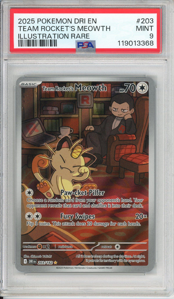 Pokemon Graded: Team Rocket's Meowth 203/182 Destined Rivals (2025) IR Holo PSA 9