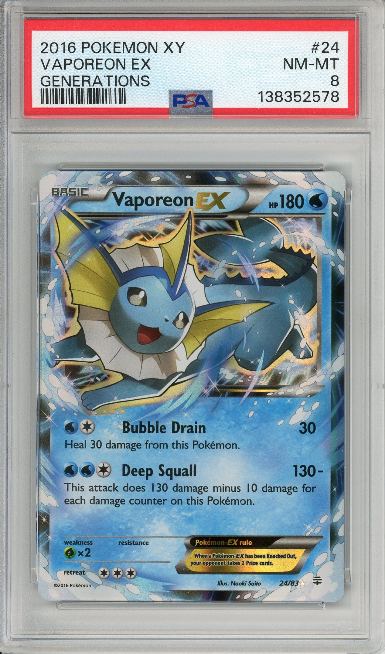 Pokemon Graded: Vaporeon EX #24 XY Generations (2016) Holo PSA 8