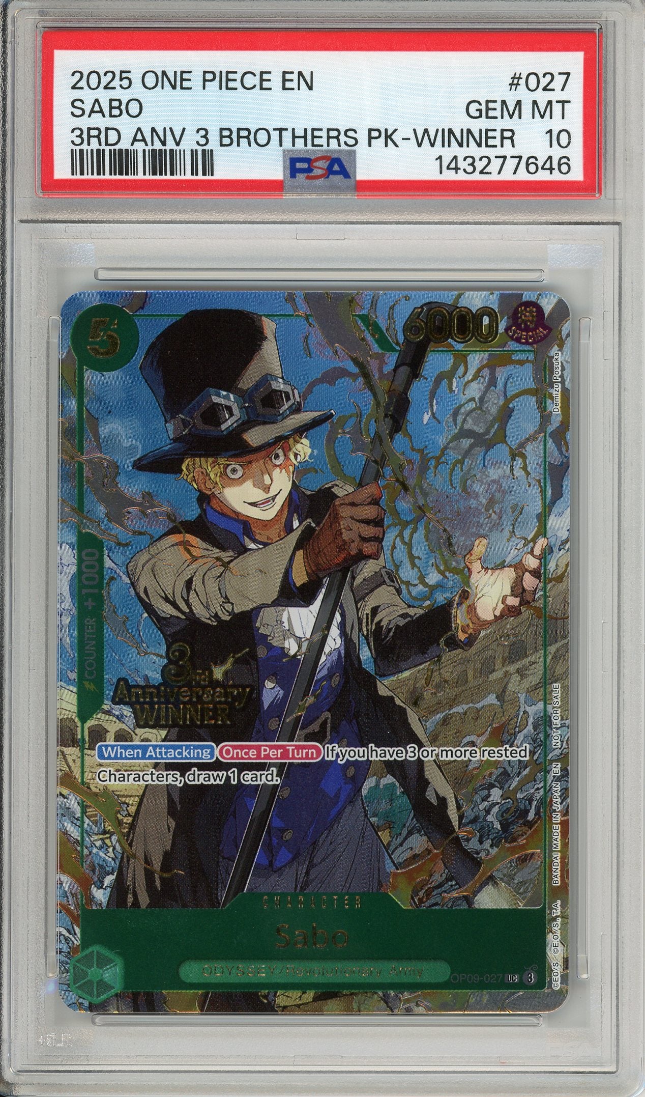 One Piece Graded: Sabo OP09-027 3rd Anniversary Winner Foil PSA 10