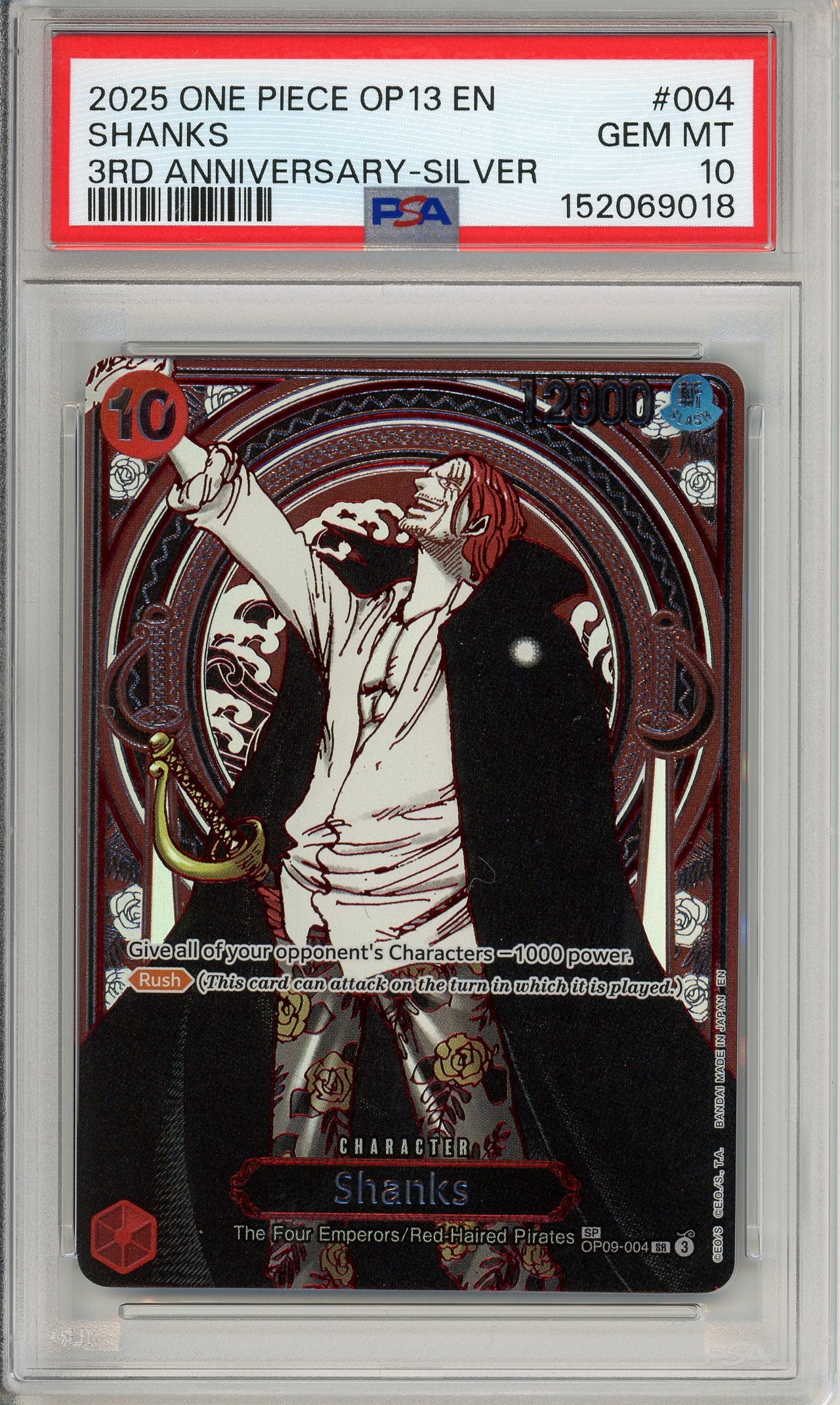 One Piece Graded: Shanks OP09-004 3rd Anniversary Silver Foil PSA 10