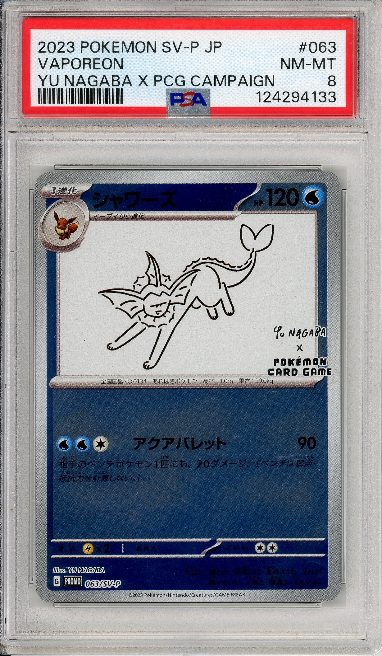 Pokemon Graded: JP Vaporeon #63 Yu Nagaba X PCG Campaign (2021) Reverse Holo PSA 8