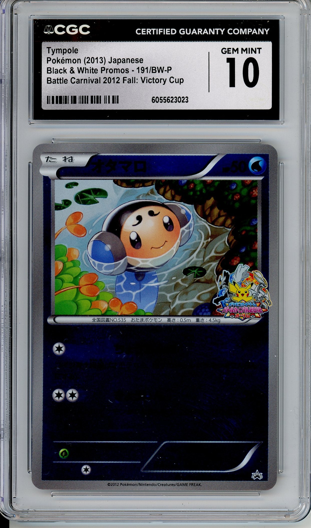 Pokemon Graded: JPN Tympole 191/BW-P Battle Carnival Fall Victory Cup (2012) Stamped Reverse Holo CGC 10